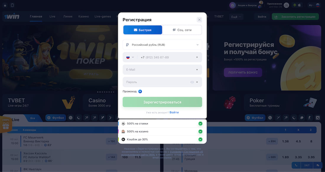 Зарегистрироваться на 1win — это первый шаг для того, чтобы начать играть на платформе и пользоваться всеми её возможностями. Процесс специально разработан так, чтобы быть максимально простым и доступным даже для начинающих пользователей. В отличие от многих других платформ, где регистрация может занимать значительное количество времени, на сайте букмекера этот процесс сведён к минимуму и занимает всего несколько минут.